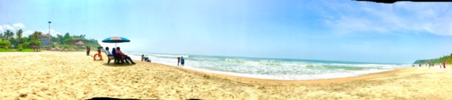 It really is HOT here and it’s been a particularly beaut day in Varkala (beach pic, top), not to rub it in too much if you’re reading this from the UK – if it’s any consolation, I was so absorbed in reading Harry Potter, that I missed the loud cries of the lifeguard sat a mere yard away from me as a wave broke and submerged me, my sandals and towel in sea water, to the great amusement of everyone else on the beach.